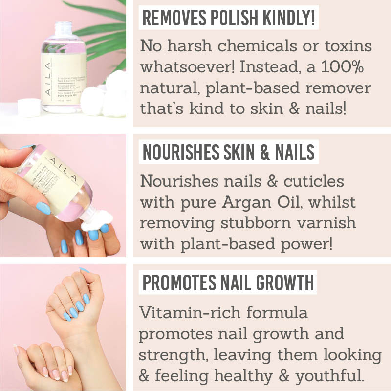 Much to my delight (after a long 12-month search!), I found the answer in the Aila 3-in-1 Soy-Based Nail Colour Remover with Pure Argan Oil.