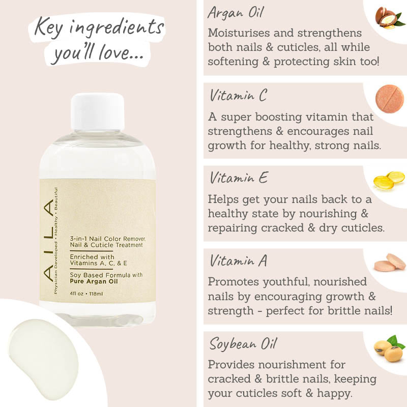 Instead, just pure 100% natural, plant-based remover that treats your nails and cuticles with this unique blend of Vitamins A, C, E and Pure Argan Oil and Soy Oil.