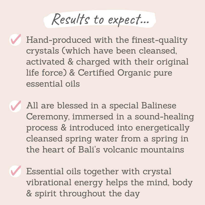 Each Balipura Aura Mist is handmade with the finest quality cleansed, activated and charged crystals, embracing their ancient healing powers.