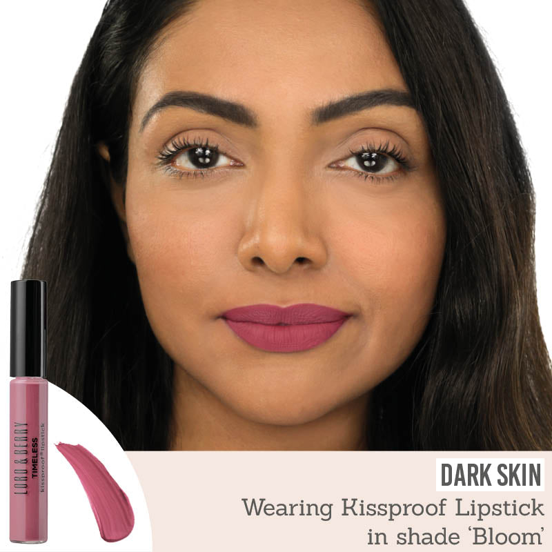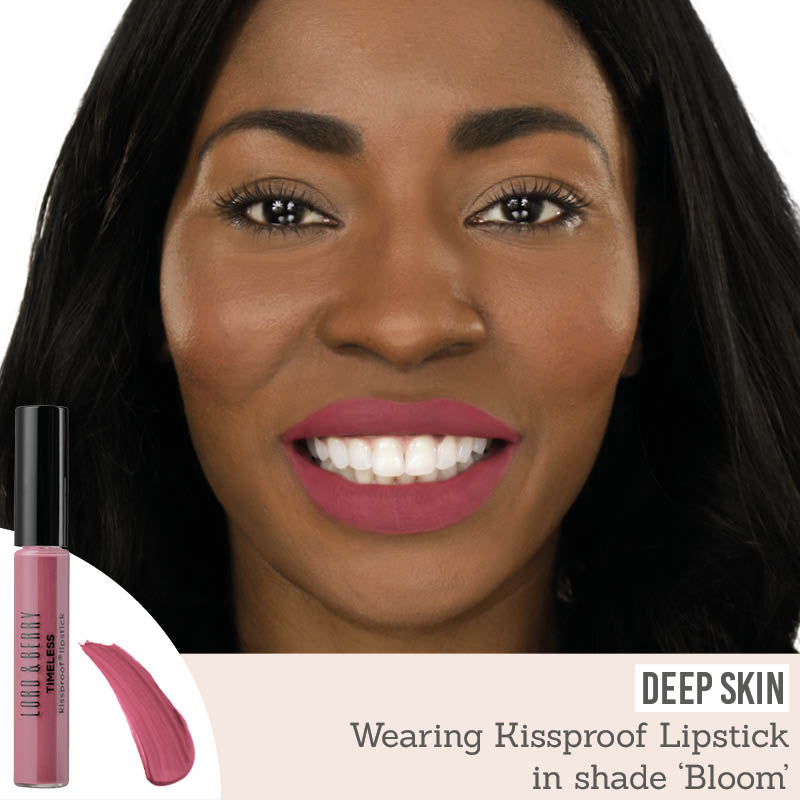 Timeless Kissproof Lipstick in 'Bloom' is the ultimate choice for those who love a matte, rosy lip that lasts all day without smudging.