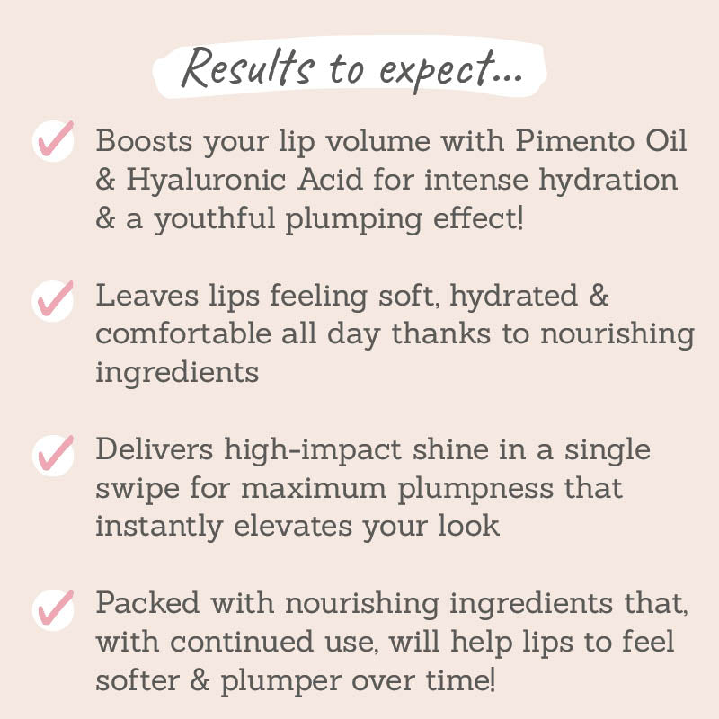 Packed with powerhouse ingredients like hyaluronic acid and pimento leaf oil, this gloss delivers a dazzling shine and a plumping effect for a luscious boost.