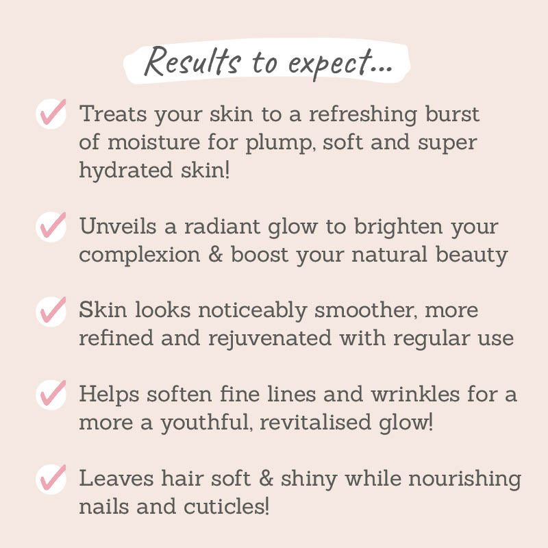 Use it as a daily moisturiser for a hydrated, radiant complexion or apply it to your hair ends for extra shine!